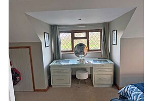If your white bureau is for computer use then we can design the bureau so that all wiring, computer and electric cables are neatly and discretely incorporated into the design.